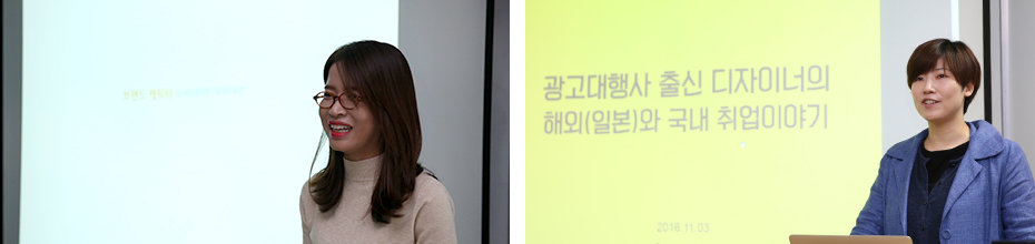 카카오스토리, 현대카드 등 학생들이 선호하는 회사의 디자이너를 직접 만나 궁금증을 해결하고 직무에 대한 이해도를 높일 수 있도록 매학기 무료 특강을 진행하고 있습니다. 졸업 후 어떤 분야로 취업을 하고 싶은지 충분히 고민하는 시간을 가지고 졸업 후 취업에 있어 남다른 경쟁력을 가질 수 있도록 준비합니다.